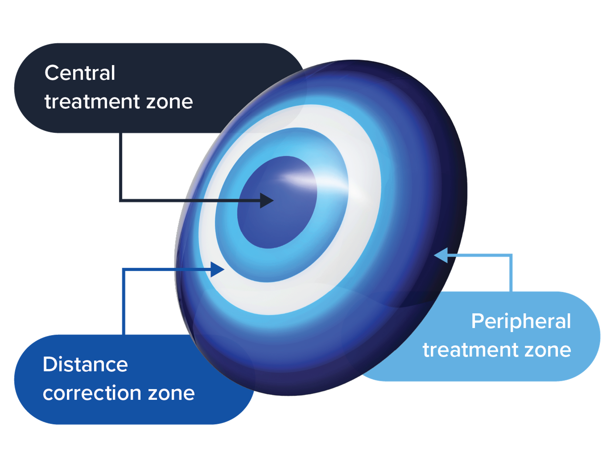 Be Free® Day-linsen har et patenteret flerzonet optisk design med trinvis progression, der i modsætning til traditionelle koncentriske eller gradierende multifokale designs, giver en centralt placeret afbalanceret add på +1,00 D, som gradvist og kontinuerligt øges mod en perifer add på +1,50 D. Dette skaber to defokuseringszoner uden skarpe overgange. Resultatet er naturlige overgange, der bidrager til reducerede haloer og glare samt en stabil og høj visuel ydeevne.